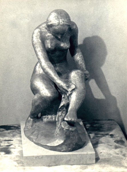 Das Werk ist datiert: 1936. Steinsockel hat die Maße: 28,50x14,50x 2,00 cm. Nach dem Krieg gegen 1 Pfund Butter eingetauscht, lt. Angabe von Frau Rauschhuber.