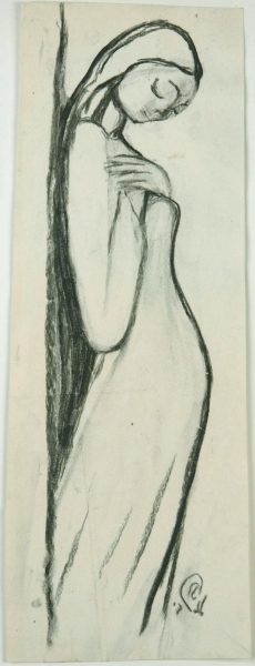 Die Zeichnung ist datiert: 1956. Der von Luis Rauschhuber vergebene Titel: "In Erwartung".