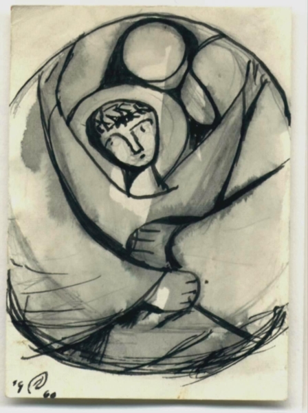 Die Zeichnung ist datiert: 1960. Sie ist nach der Ausführung der Großplastik entstanden.