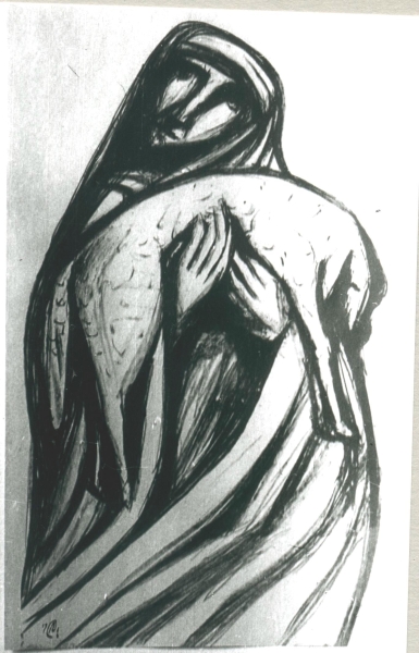 Die Zeichnung ist datiert: 1963. Maße unbekannt. Nur im Foto erhalten.