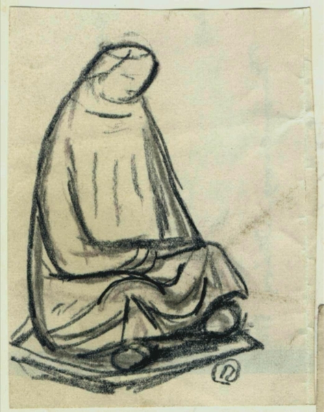 Entstanden um 1951. In Skizzenbuch 1: gebundenes Buch (24x20 cm), vorwiegend sind die Zeichnungen eingeklebt, teilweise auch ins Buch gezeichnet.