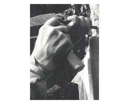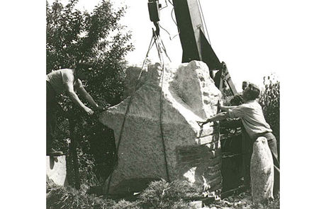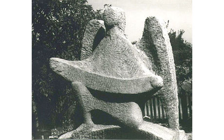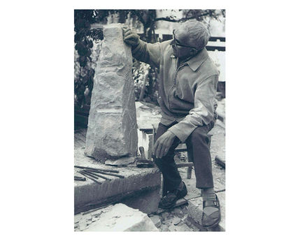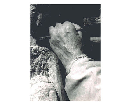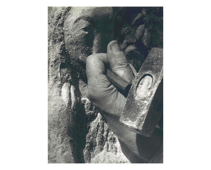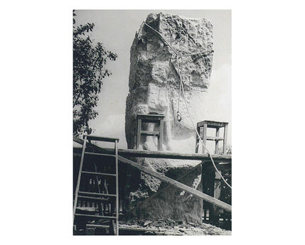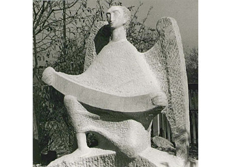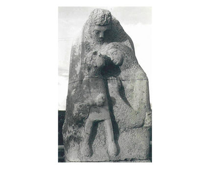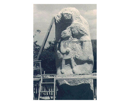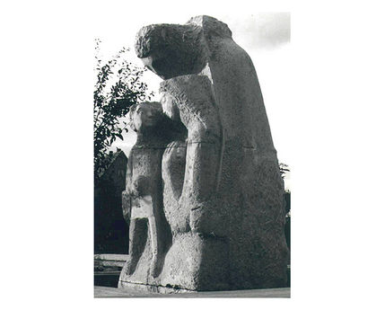 Entstehung einer Gartenplastik "Mutter mit Kind". Fotos aus der Abschlussarbeit eines Fotografen um 1960.
