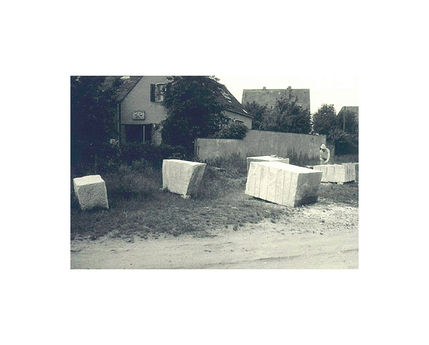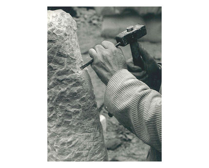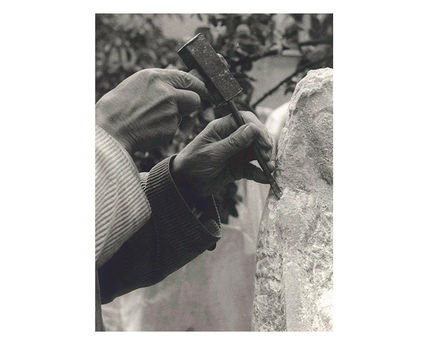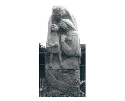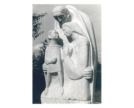 Enstehung einer großen Plastik "Die Heilige Familie" aus Treuchtlinger Marmor für die Kirche "zur Heiligen Familie" in Würzburg/Heidingsfeld um 1957.