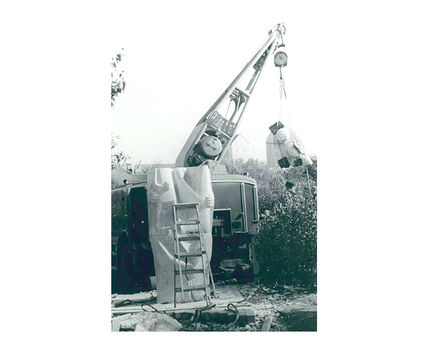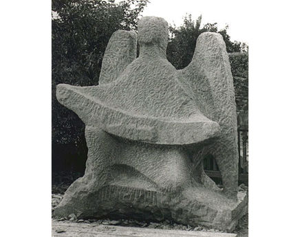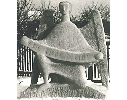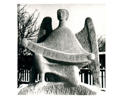 Entstehung eines großen Grabmals "Engel". Um 1958 am Alten Friedhof in Zirndorf bei Nürnberg.