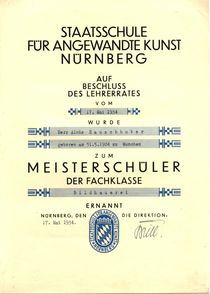 jetzt als Meisterschüler, in seine ehemalige Schule eintreten. Ab 1936 war er als freier Bildhauer in Nürnberg tätig.