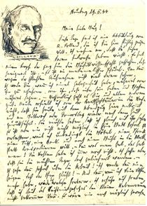 Ich muss jetzt schon etwas haushalten mit meinem Geld wenn ich mit keiner weiteren Zahlung der Behörden mehr rechnen kann. – Ich habe noch viel zu kaufen, ehe ich mir die Arbeitsmöglichkeit wieder recht geschaffen habe. – Nun Schluss mit dem materiellen .... – Morgen Fahre ich nach München und werde Dich im Geiste neben mir fühlen. – Ich werde Dir dies und jenes zeigen und dann zum Ton gehen und da mit Dir viele Gedanken tauschen. – Ich werde Dich im Geiste herzen und küssen und all die Erlebnisse heraufrufen die wir gemeinsam in jener schönen Zeit hatten als die schöne stolze Stadt grün begrenzt war, als die Vögel sangen und die Tage voll sommerlichen Glanzes aufstanden. – Ich werde Dich abermals zur Isar führen, in die schönen Auen und wie einst mit Dir das gewaltige Rauschen hören das so viele Erinnerungen aus meiner Kindheit weckt. Hebe Dich geliebtes Herz! Die Göttlichkeit die uns alles gibt, bis wir uns wieder sprechen!