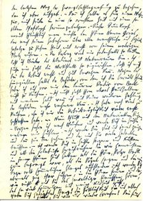 Ich gehe dann sofort über die Arbeit! – Ich werde dann einheizen, dass der Ofen glüht! – Und dann, wenn ich keine Kohlen mehr habe, werde ich welche fordern. Ich erfuhr auch soeben, dass ich laut des Reichsmietgesetzes den kleinen Raum nicht bekommen kann. Es wäre mir noch möglich gewesen den letzten Weg der Zwangsbeschlagnahmung zu begehen den ich aufgab. – Denn ich halte es für einen Unsinn, mich heute in einer so ernsten Zeit mit einem so alten Schafskopf herumzubalzen. – Dieser Dummkopf meint schließlich man möchte den schönen Namen Gries, der nach seinem Gebahren über alle menschlichen und soz. Gesetze zu stehen scheint, mit Ernst von seinem modrigen Platz rühren. – Der Vertrag wird mir jedenfalls so lauten, dass ich Mieter des Ateliers mit Nebenraum bin. Ich suche mir jetzt die Werkstatt so einzurichten, dass ich mich bei der Arbeit recht und gut bewegen kann. Wegen dem finanziellen Fall der Behörde, von dem ich Dir bereits schrieb habe ich auch vor, mir den teuren Radio von Beck nicht zu kaufen. –